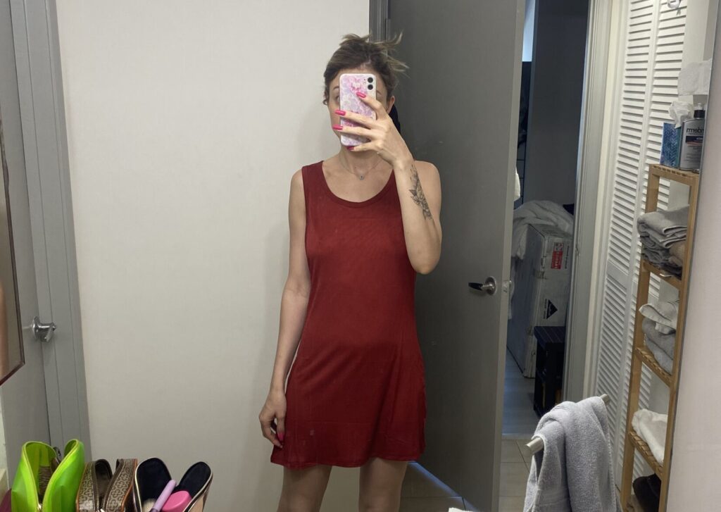 Ao me trocar para dormir, fui presenteada com um vestido regata vermelho tão confortável, que logo entendi se tratar de uma camisola.